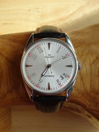 Orologio sportivo di marca Roundex allo stesso tempo elegante. Stato di conservazione praticamente nuovo. Viene fornito con un nuovo cinturino in pelle nera da 20 mm con cuciture rosse abbinate e finitura racing in carbonio. Eccellente movimento meccanico automatico ETA 2824-2 che non ha bisogno di presentazioni, di 25 gioielli in condizioni eccellenti e perfettamente funzionanti. Diametro senza corona: 36 mm ¡¡. ###### Non leggere: Felsa, Valjoux, Navigraf, Vulcain, Criquet, Hamilton, Baume, Girard, Seiko, Citicen, Certina, Tissot, Glycine, Cauny, Dogma, Cyma, Cartier, Must, Landeron, Zenith, Jaeger, Angelus, Longines, Omega, Eberhard. -