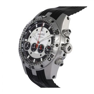 Orologio Eberhard Crono 4 Gent cod.31060. CU Movimento cronografo meccanico automatico Swiss made Vetro zaffiro antiriflesso Cassa in acciaio con corona a vite con para corona e pulsanti a vite fondello serrato da 8 viti diametro mm. 46 Impermeabile 20 atm Cinturino in gomma Garanzia ufficiale 2 anni Astuccio ufficiale Eberhard