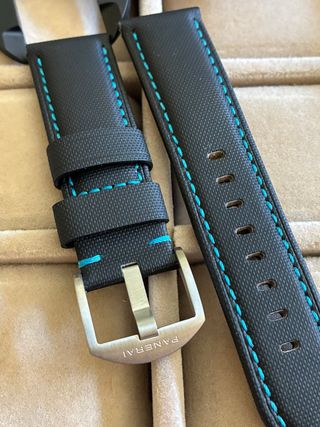 Cinturino per Panerai Nero con Cuciture Turchese