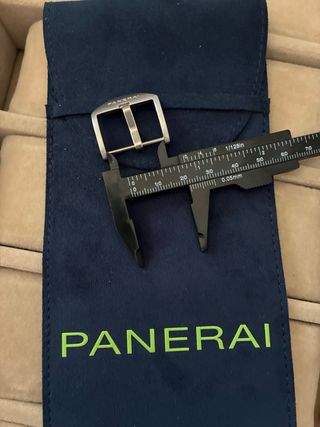 fibbia ad ardiglione in acciaio satinato per orologio Officine Panerai misura 22mm (Cedesi solo fibbia in foto box ceduto separatamente)