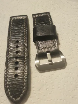 Cinturino in pelle artigianale per Panerai, Longines, Rolex, Omega, ecc... - Pelle di alta qualità, colore nero, concia vegetale, in perfetto stato. - Comodo, durevole, premium. - Fibbia in acciaio inossidabile da 24mm. - Cuciture rinforzate, colore bianco. - Vendo perché non più utilizzato, ma non posso abbassare ulteriormente il prezzo.
