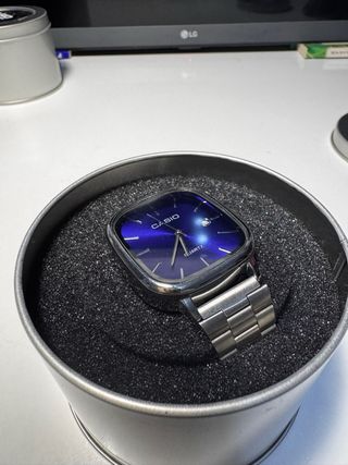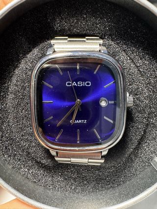 Vendo questo Casio dal design rettangolare con un quadrante blu profondo con effetto Sunray. È un pezzo che si distingue per la sua eleganza classica e un colore del quadrante che cambia intensità con la luce, offrendo un tocco di distinzione unico. Dettagli del prodotto: • Stato: Nuovo. • Quadrante: Blu vibrante con finitura raggi solari e finestra data alle 3. • Cassa: Rettangolare in stile vintage, cromata e molto stilizzata. • Cinturino: Bracciale in acciaio inossidabile con maglie regolabili. • Movimento: Quarzo ad alta precisione. Spedizione disponibile 📦