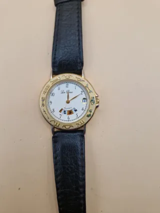 Elegante orologio Le Duc dal design vintage. - Cassa color oro. - Cinturino in pelle nera. - Quadrante bianco con dettagli. - Movimento al quarzo.