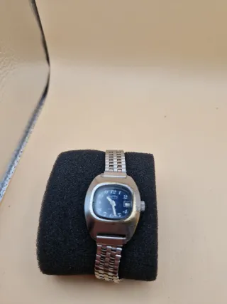 Elegante orologio meccanico Tissot da donna, un pezzo vintage dal fascino intramontabile. - Quadrante di colore blu. - Cassa di colore argento. - Cinturino in pelle nera.
