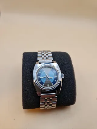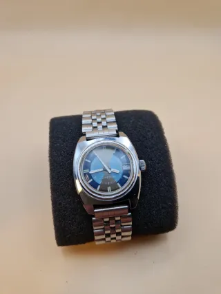 Orologio da polso Seiko automatico con quadrante blu. - Movimento automatico. - 23 rubini. - Cinturino in metallo argentato.