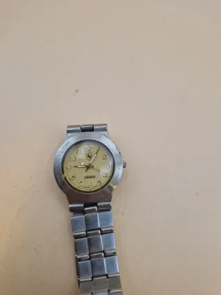 Orologio da polso Fanante con logo Scuderia Ferrari. Alcune segni di usura - Movimento al quarzo. - Cinturino in metallo argentato e dorato. - Quadrante color oro con indici applicati.