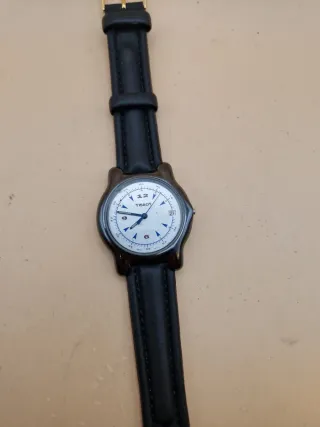 Orologio Tissot Ceraten vintage con cassa in ceramica nera. DA CAMBIARE BATTERIA Tissot Ceraten Vintage - Cassa in Ceramica Nera - Swiss Made - Quadrante bianco con indici e lancette blu. - Cinturino in pelle nera. - Chiusura con fibbia dorata.