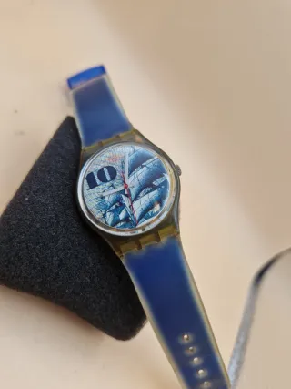 Orologio Swatch vintage MARK (GM106) del 1991. Un pezzo da collezione in ottime condizioni. Swatch Vintage 1991 "MARK" (GM106) – Ottime Condizioni e Funzionante Descrizione Vendo iconico orologio Swatch Gent modello "Mark" (codice GM106), appartenente alla collezione vintage del 1991. Un pezzo di storia del design svizzero degli anni '90, perfetto per collezionisti o per chi cerca un accessorio retrò dallo stile unico. Caratteristiche principali: Modello: Swatch Gent "Mark" GM106 (1991). Quadrante: Splendida illustrazione nautica con velieri in tonalità blu/azzurro e numero "10" stilizzato. Condizioni: Ottime.