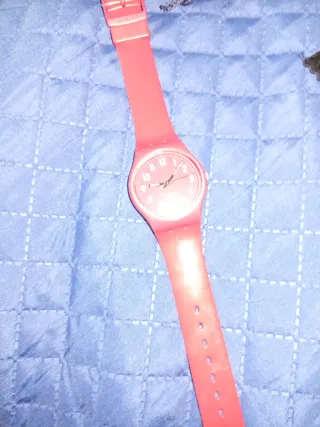 Orologio da polso vintage della marca Swatch. - Cinturino in gomma rosso. - Quadrante rotondo con numeri. - Chiusura a fibbia.