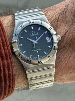 NUOVO CON CARTELLINO 🏷️ Bellissimo Omega Constellation Automatico ann 2004 perfettamente funzionante e mai indossato. L'orologio in acciaio presenta sul quadrante blu con micro lavorazione molto particolare, indici luminescenti, funzione data, cinturino e corona marchiate omega, molto più bello dal vivo. Misura cassa: 35,5 mm
