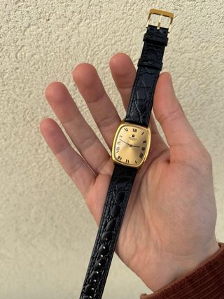 Direttamente dalla Svizzera bellissimo orologio stile Tank della iconica casa produttrice "Universal Geneve" anni 1970 carica manuale. Orologio elegantissimo al polso, con corona originale marchiata e con cassa placcata in oro. Misura cassa: 29 mm