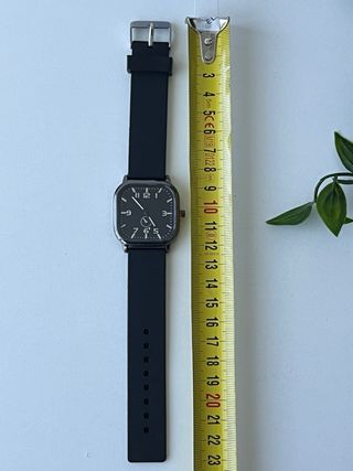 Elegante orologio da uomo, nuovo e mai usato. - Quadrante nero con indici a contrasto. - Cinturino in gomma nero. - Design moderno e raffinato.