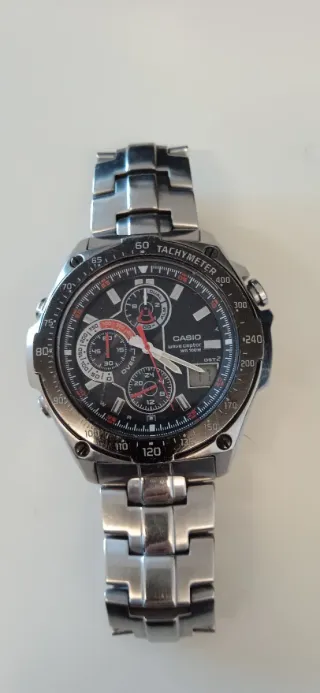 Orologio da polso Casio Wave Ceptor con cinturino in metallo. Da mia collezione personale. Orologio ottimo considerando l'età - Quadrante nero. - Dettagli argentati e rossi. - Funzione tachimetro.