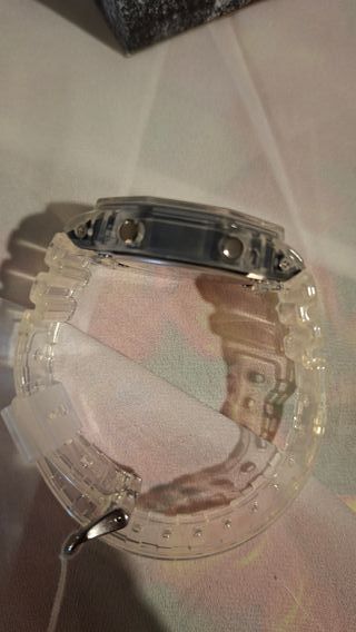 Orologio Casio G-Shock con cassa e cinturino trasparenti. Casio orologio ga-2100bm-7a8er Colore: cinturino trasparente cassa grigio Dimensioni della cassa (A x L x P) 48.5 × 45.4 × 11.8 mm Peso 51 g misura cinturino: Larghezza cinturino 26 mm Larghezza tra Anse 16 mm Misura cinturino alla fibbia 19 mm Materiale della cassa e della lunetta: carbonio/resina Cinturino in resina Struttura: Resistente agli urti Struttura Carbon Core Guard Impermeabile fino a 20 bar Alimentazione e durata della batteria Durata approssimativa della batteria: 3 anni con SR726W X 2 Vetro minerale Cinturino regolabile: 145 to 215 mm Varie: Neobrite Ora i