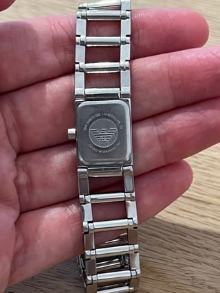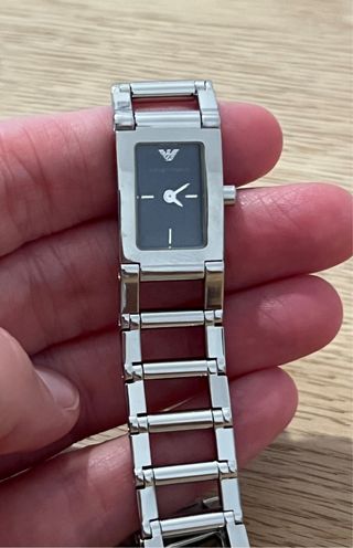 Orologio da donna Emporio Armani Qualche piccolo graffio come da foto Misure: 17,3 x 1,8 cm Funzionante, bisogna cambiare la pila Quadrante colore grigio-blu