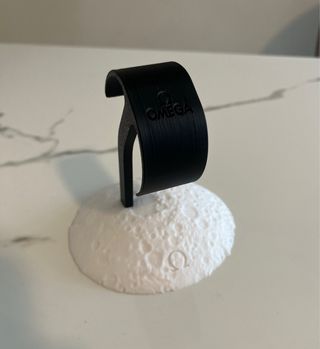 Supporto elegante per esporre il tuo orologio Omega. Realizzato con un design unico che ricorda la luna. orologio non incluso - Base con finitura testurizzata. - Logo Omega inciso sulla base. speedmaster seamaster