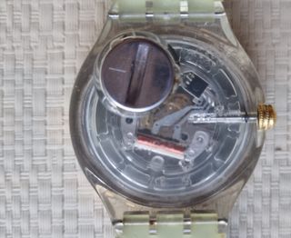 Orologio Swatch Scuba Libre lemon profond con cassa trasparente. - Lunetta girevole con numeri. - Movimento a vista sul quadrante. Senza cinturino Funzionante, senza batteria