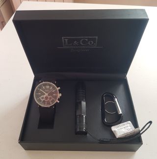 Elegante set regalo L&Co. - Orologio da uomo - Torcia - Portachiavi