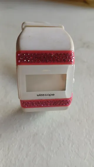 Orologio Wize & Ope con cinturino bianco e dettagli rosa. - Decorazione con strass rosa. - Logo wize & ope sul quadrante. L'orologio necessita della sostituzione della batteria