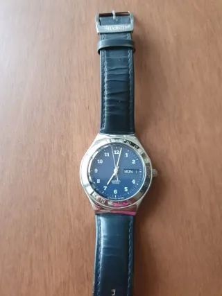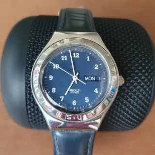 Vendo orologio Swatch Irony Blue Road con quadrante blu e cassa in acciaio. Il cinturino è in pelle blu. Perfettamente funzionante. Batteria appena sostituita. Diametro 38mm.