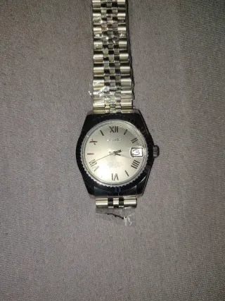 Orologio da polso con cinturino in metallo. - Quadrante con indici romani. - Lunetta scanalata. - Movimento automatico. -No box