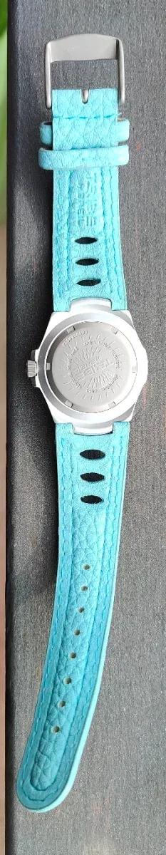 Orologio con cinturino in gomma e acciaio regolabile. Il quadrante e la cassa sono ancora rivestiti con pellicola trasparente. Cassa diametro 41 mm