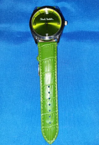 Elegante orologio da polso Renato Balestra con cinturino verde e cassa argentata. - Quadrante verde con finitura satinata. - Indici e lancette argentati. - Cinturino in pelle verde.