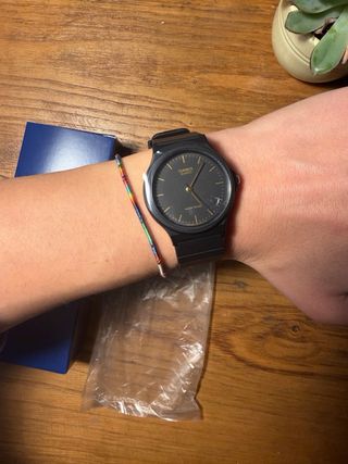 Orologio da polso Casio con cinturino nero. - Cassa nera. - Quadrante nero con dettagli dorati.