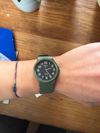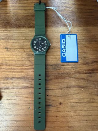 Orologio da polso Casio con cinturino verde. - Quadrante nero con numeri arabi. - Cinturino in gomma.