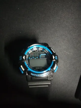 Orologio da polso: Vendo per mancato utilizzo Funzionante ma la batteria e scarica e bisogna cambiarla ha diverse funzionalità come mettere un timer oppure se premi il pulsante con su scritto light il quadrante diventa blu per farti vedere l' ora anche al buio.