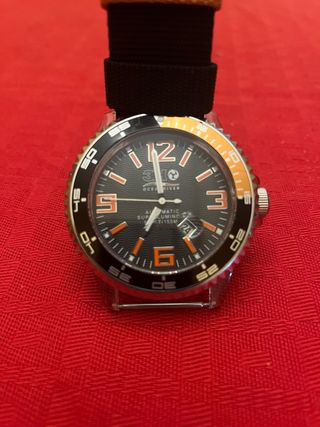 Orologio subacqueo con movimento automatico. 3HO Oceandiver – orologio diver con movimento automatico, solido e affidabile. Impermeabilità 150 m, adatto a mare e uso quotidiano. Cassa in policarbonato e acciaio, resistente e leggera. Quadrante con Super-LumiNova per un’ottima leggibilità anche al buio. Condizioni ottime, perfettamente funzionante. Unico proprietario. Incluso cinturino originale double-face arancio/nero. Venduto senza scatola e documenti.