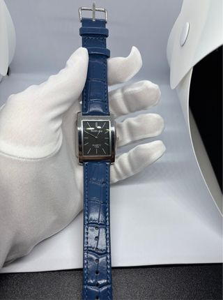 Orologio funzionante, cinturino appena montato, cassa tank cioccolatino rettangolare, vintage, quadrante nero, dimensioni 31x33 mm ( senza anse ) Elegante orologio da polso con cinturino blu e quadrante nero. - Design rettangolare tank. - Cinturino in ecopelle blu con texture. - Quadrante nero con indici a bastone.