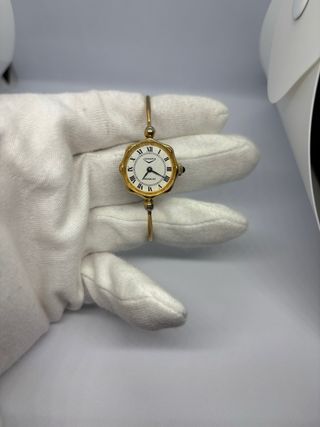 Elegante orologio da polso vintage Loengrin da donna, con cassa e cinturino color oro e quadrante bianco. - Design classico e raffinato. - Dettagli con numeri romani sul quadrante. Movimento meccanico a carica manuale. Carica bloccata, da revisionare. Incabloc.