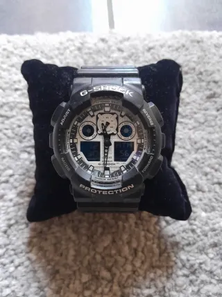 Orologio G-Shock Casio modello GA-100BW. Design moderno e resistente. - Cassa e cinturino neri. - Quadrante bianco con dettagli neri e blu. - Resistente agli urti. Potrebbe arrivare anche* scarico