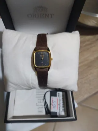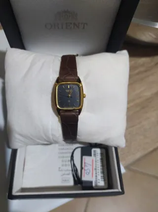 Elegante orologio da donna Orient, nuovo e mai usato. - Cassa color oro. - Cinturino in pelle marrone.