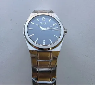 Elegante orologio da uomo Stroili, nuovo e mai indossato. La pellicola è applicata anche sul vetro,non è il vetro segnato Misura quadrante 41mm esclusa la corona - Cassa e bracciale in acciaio inossidabile. - Quadrante nero con indici a bastone. - Datario a ore 3. - Chiusura deployante con pulsanti.