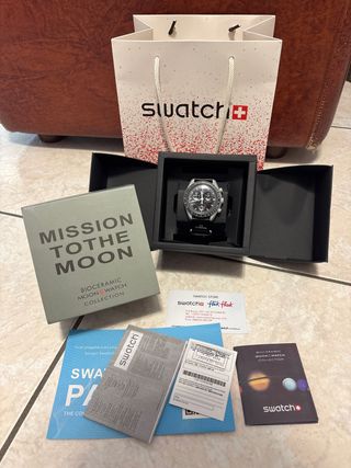 Orologio Swatch x Omega Mission to the Moon della collezione Bioceramic. - Cassa in bioceramica. - Cinturino in velcro. - Scatola originale. - Documentazione inclusa.