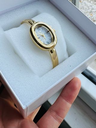 Reloj de mujer con diseño delicado y elegante, ideal para completar cualquier look con un toque de clase. El acabado dorado y su estilo femenino lo hacen perfecto tanto para el uso diario como para ocasiones especiales. El reloj es completamente nuevo, sin ningún rasguño y la batería funciona perfectamente. Un accesorio chic, ligero y cómodo de llevar, perfecto también como idea de regalo.