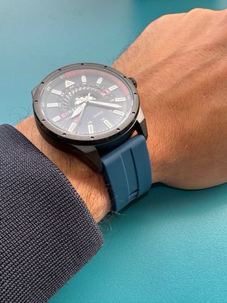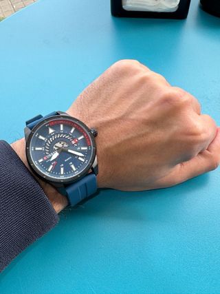 Reloj con un diseño moderno y muy llamativo, perfecto para un estilo deportivo–casual. La esfera en azul oscuro con detalles en blanco y rojo le da un toque único y diferente, mientras que la correa de silicona azul es cómoda y resistente para el uso diario. Ideal para trabajo, tiempo libre o como accesorio versátil para cualquier outfit. Está en muy buen estado y funciona perfectamente. Si quieres más fotos o información, no dudes en escribirme.