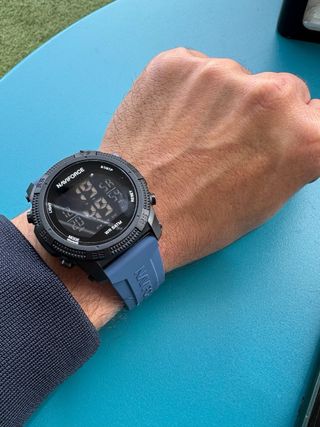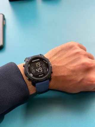 Reloj digital deportivo con diseño robusto y moderno, ideal para uso diario y actividades al aire libre. Pantalla digital clara y fácil de leer, con caja resistente y correa cómoda en color azul. Resistente al agua y sumergible hasta 20 metros de profundidad, adecuado para lluvia, lavado de manos y uso cotidiano. Incluye funciones de hora, fecha, alarma, cronómetro e iluminación. Funciona perfectamente y se encuentra en muy buen estado. Una excelente opción para quien busca un reloj práctico, resistente y versátil, también ideal como regalo.