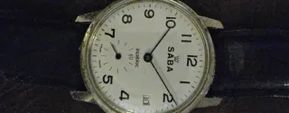 Orologio da polso con cinturino in pelle nera e cassa argentata. - Quadrante bianco con numeri arabi. - Lancette per ore e minuti. - Cinturino in pelle nera con fibbia. - Cassa in metallo color argento.