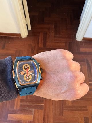 Reloj para hombre con diseño moderno y deportivo, ideal para quienes buscan un estilo fuerte y llamativo. Su apariencia sofisticada y sus detalles cuidados lo hacen perfecto tanto para el uso diario como para looks casuales o deportivos. El reloj es nuevo, sin ningún rasguño y la batería funciona perfectamente. Un accesorio resistente, cómodo y con carácter, ideal también como regalo.