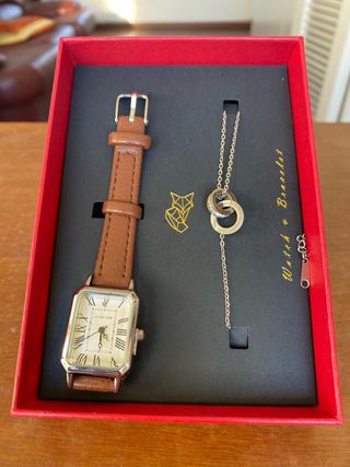 Precioso set de reloj clásico con pulsera a juego, presentado en una caja elegante. Diseño refinado y atemporal, ideal para quienes aman los detalles con estilo. Perfecto como regalo de Navidad, cumpleaños o una ocasión especial. Nuevo, funciona perfectamente y listo para regalar. Un detalle sofisticado que no pasa desapercibido estas fiestas 🎄✨ Envío rápido y embalaje cuidadoso