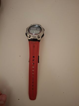 Reloj de pulsera con correa de silicona. - Esfera plateada. - Correa de silicona roja.