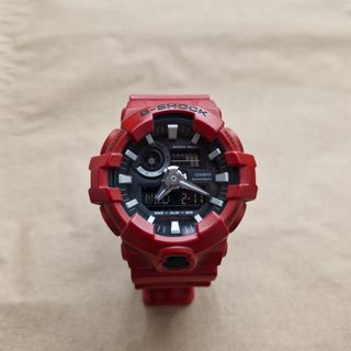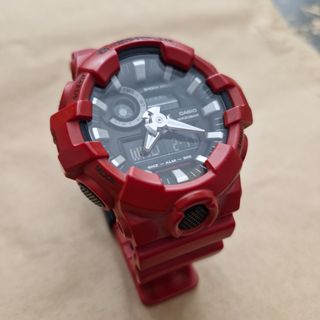 Orologio Casio G-Shock modello GA700. - Cassa e cinturino in resina rossa. - Quadrante nero con dettagli. - Resistente agli urti e all'acqua (WR20BAR).