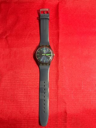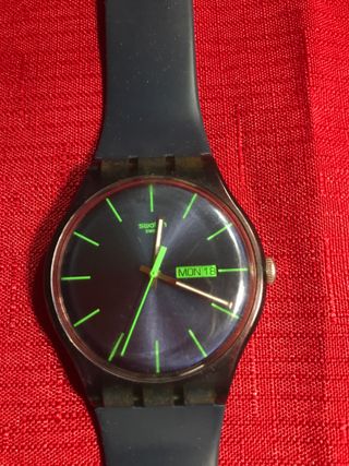 Orologio Swatch modello New Gent. - Cinturino in silicone blu. - Quadrante blu con indici e lancette verdi. - Datario con giorno della settimana e numero del giorno. Batteria sistituita di recente Perfettamente funzionante
