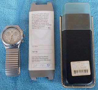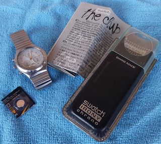 SWATCH IRONY CHRONO ICS 400 Chrono con cinturino Flex elasticizzato Taglia Large Funzionante Testato Prima di Pubblicare l'inserzione Condizioni: Ottime Il chrono si presente in ottime condizIoni con un leggerissimo graffio sul vetro (non riesco a farlo evidenziare in foto) Le restanti condizioni sono da considerarsi "ottime" considerati i suoi 27 anni d'età. Scatola Originale con Prezzo espresso in Lire (150.000) Certificato di garanzia datato 30 Giugno 1998 FOTO REALI - Quadrante con cronografo. - Vetro in plastica. - Chiusura deployante.