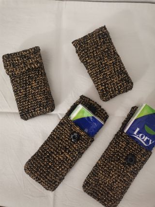 Porta fazzoletti di carta fatti a mano all'uncinetto. Perfetti per portare con te i fazzoletti. - Realizzati con filato resistente, nero glitterato - Design intrecciato unico. - Chiusura con bottone. -Il prezzo è riferito al singolo pezzo