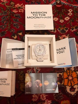 Orologio Omega x Swatch Mission to the Moonphase. - Cassa in bioceramica. - Cinturino in velcro. - Completo di scatola e documenti.