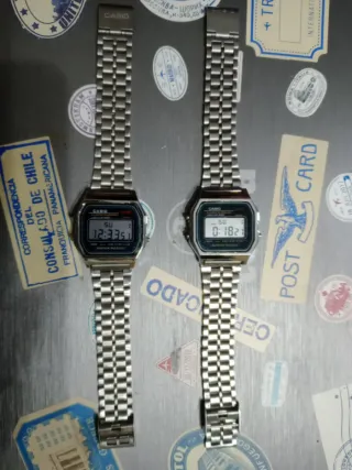 Due orologi Casio con cassa argentata e cinturino in metallo. - Modello con display digitale. - Resistenti all'acqua.